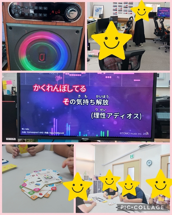今日のレクレーションはカラオケとワードバスケット(カードゲーム)でした😊