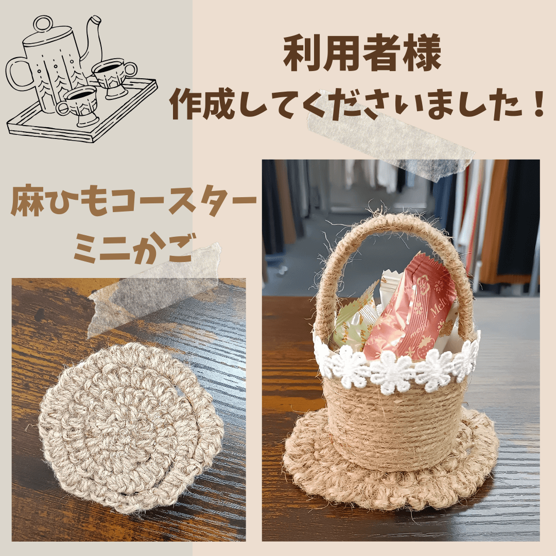 小学生など小さなお客様もありがたいことに増えてきたので、明日は利用者様が作った可愛い小さなミニかご(小物入れ)にお菓子を入れて配りたいと思います(*^^)v