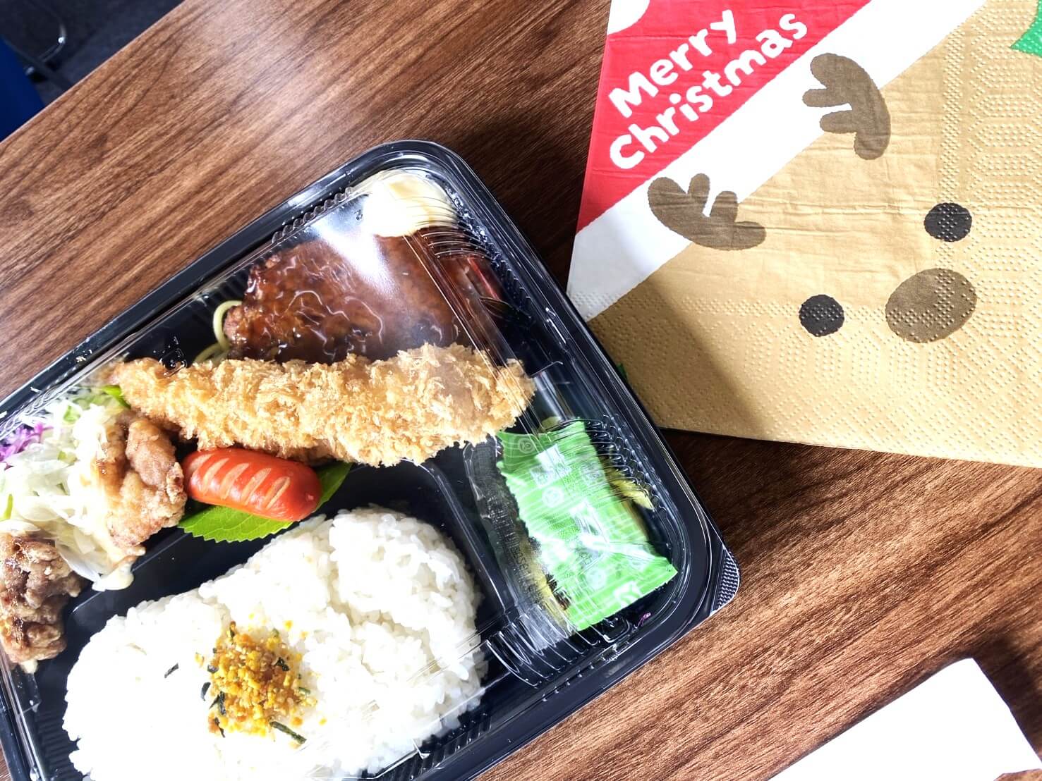 いつもより少し豪華なお弁当を職員、利用者のみなさんで一緒に食べました。