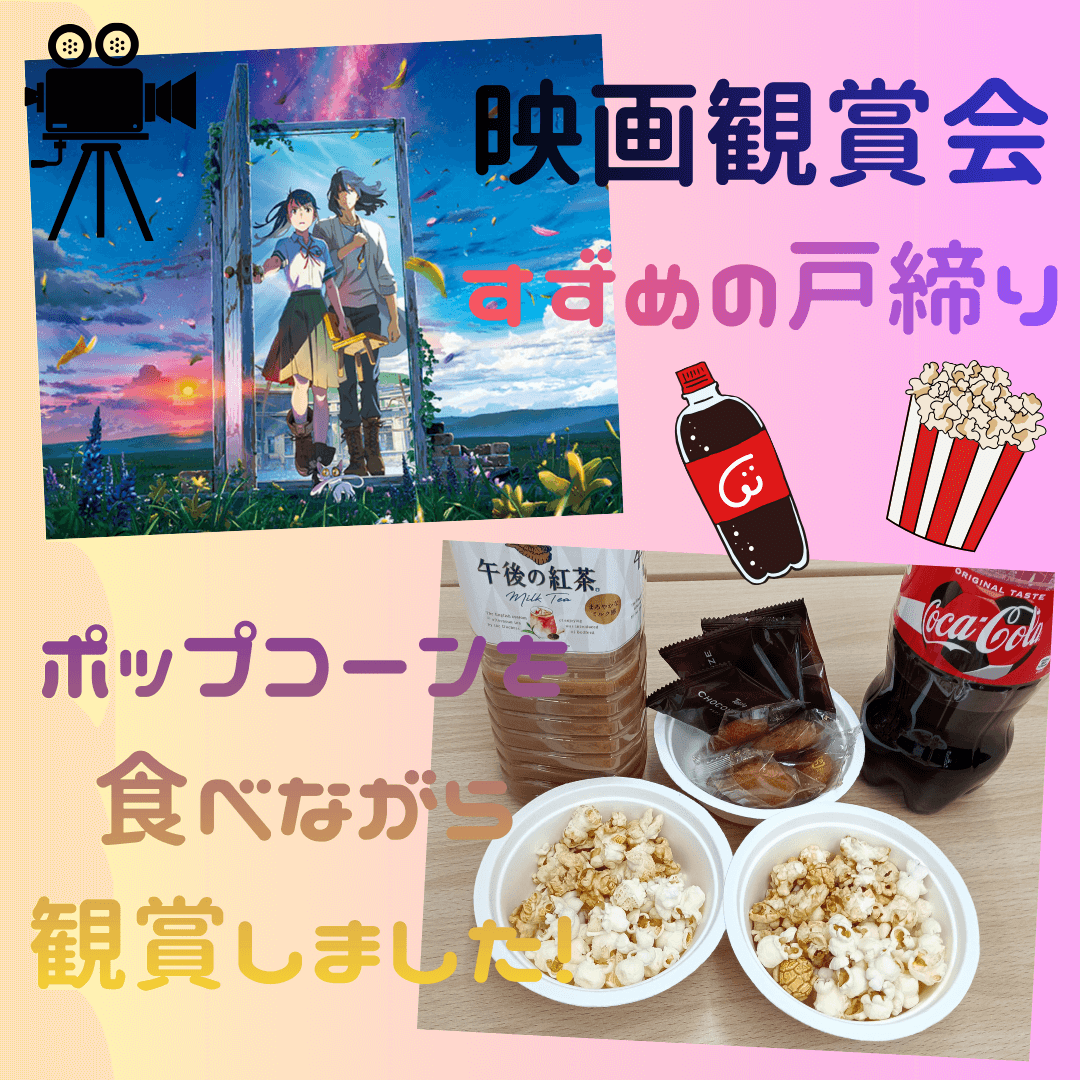 利用者様と【すずめの戸締り】を観ましたが、皆さま真剣に観賞しておりました✨